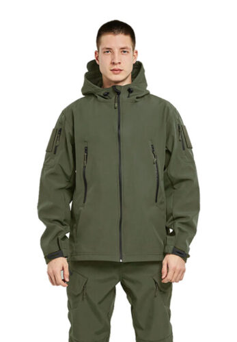 Универсальный мужской костюм состоит из куртки с капюшоном и брюк.