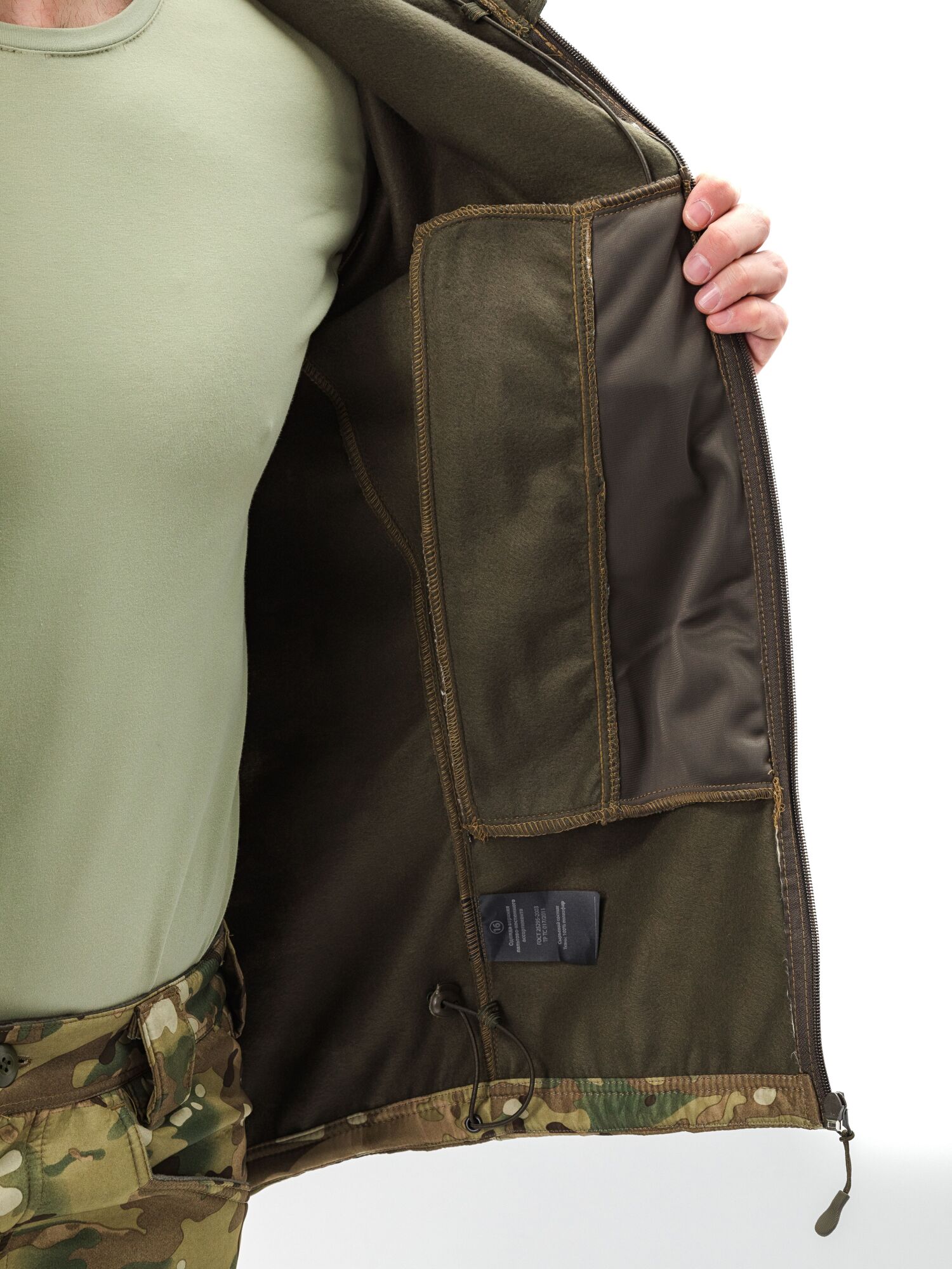 - прорезные карманы в рамку на рукавах со входом на молнию и ограничителями с двух сторон для замка, на кармане широкая липучка под шеврон;